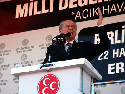 MHP Genel Başkanı Devlet Bahçeli, "Milli Değerleri Koru ve Yaşat" açık hava toplantıları kapsamında Erzurum İstasyon Meydanı'nda düzenlenen "Birlik Mitingi"nde halka seslendi
