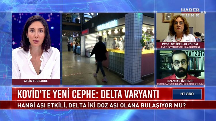 Türkiye'de kaç Delta var, salgın seyrini nasıl etkileyecek? Vaka sayılarını tekrar artırır mı, kısıtlamalar döner mi? "Delta" 2 doz aşı olana bulaşıyor mu? Deltanın belirtileri farklı mı? Delta varyantı hastaneye yansıdı mı? Afşin Yurdakul HT 360'ta Acıbadem Üniversitesi Enfeksiyon Hastalıkları Uzmanı Prof. Dr. İftihar Köksal ve ODTÜ İstatistik Bölümü Öğretim Görevlisi Ozancan Özdemir ile konuştu.