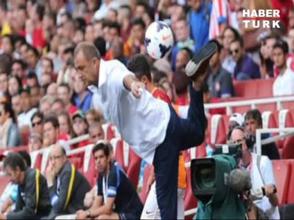 Fatih Terim'in dün takımının Porto ile İngiltere'de yaptığı hazırlık maçında yaptığı hareket, İngiltere medyasına konu oldu. Tecrübeli teknik adam oyuncularını uyarmak için çıktığı taç çizgisi kenarında kendisine doğru gelen topu 'akrep vuruşu" ile karşıladı ve tribünlerden büyük alkış aldı